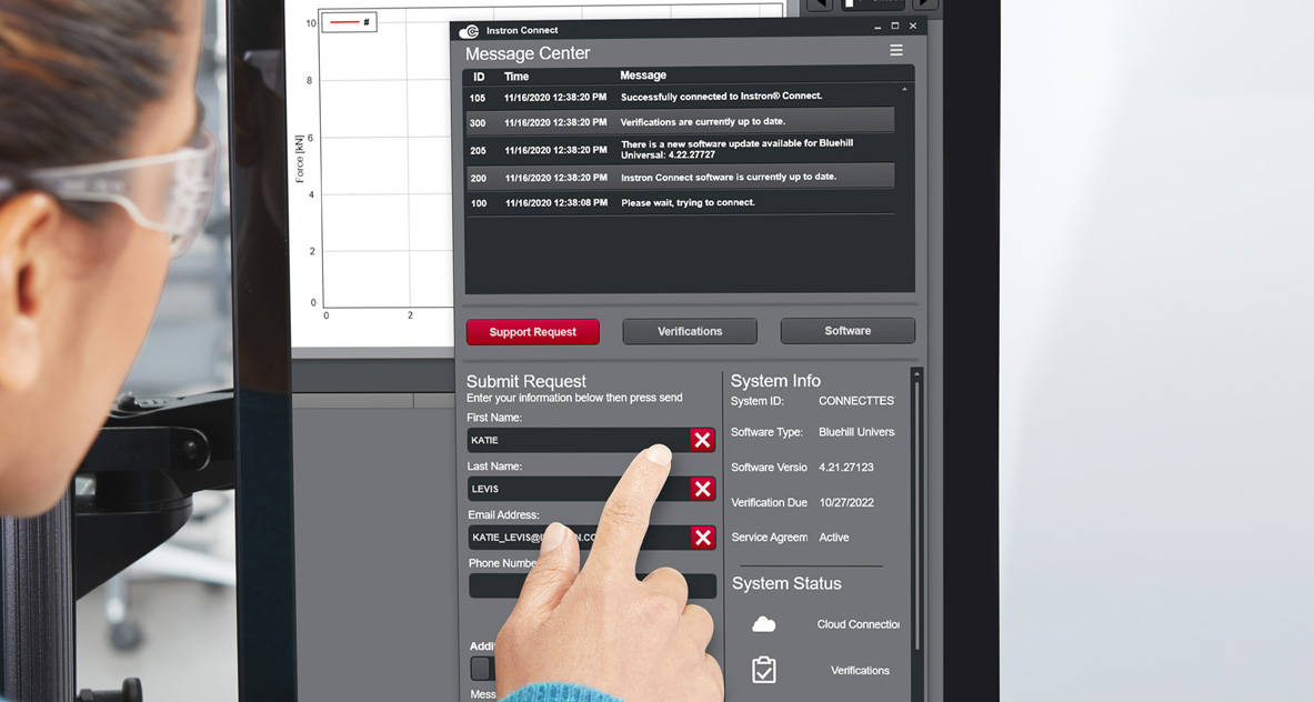 The 3400 and 6800 Series systems are equipped with a new Collision Mitigation feature to help reduce accidental equipment and specimen damage. Collision Mitigation enables the systems to continually monitor force during jog and return, and will automatically stop the crosshead movement if an unexpected force is detected. Mishaps happen, and the goal of Collision Mitigation is to reduce the negative financial and downtime impacts associated with such occurrences.