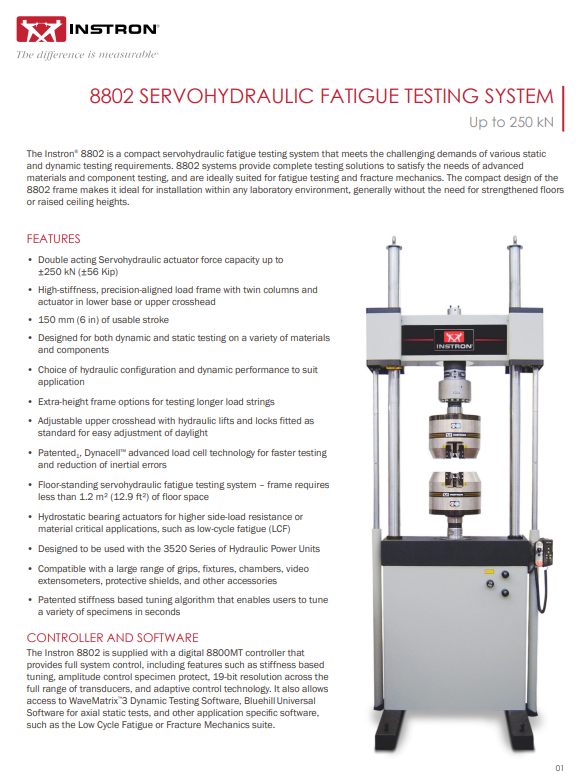 components up to 500 kN. 8803 systems provide complete testing solutions to satisfy the needs of advanced materials