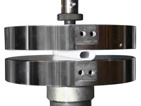 Hardened-steel compression platens are recommended to apply the deformation load to the test specimen. These anvils can be fitted to any universal tensile testing machine.